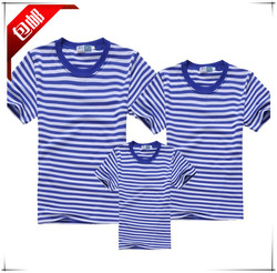 复古海魂衫一家三口亲子装夏季海军衫男女班服短袖条纹衫打底T恤