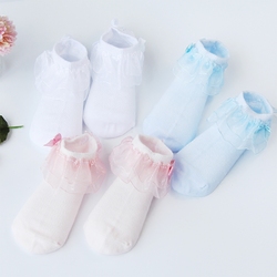 宝宝袜夏季蝴蝶结可爱公主花边短袜子儿童无骨花边全棉透气网眼袜