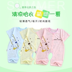 男女宝宝夏装开裆连体衣新生儿轻薄款睡衣透气纯全棉短袖哈衣爬服