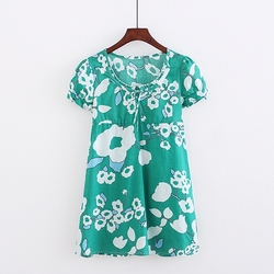 夏新款清新印花收腰中大童连衣裙公主裙子学院风打底短袖裙亲子裙