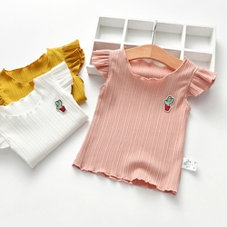 女童夏装T恤2018新款中小童韩版纯棉木耳边纯色上衣儿童宝宝短袖