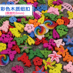 彩色木头卡通纽扣 幼儿园儿童手工制作diy贴画材料粘贴木质扣子