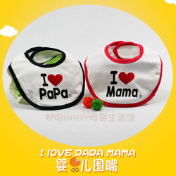 我爱爸爸妈妈婴儿小围嘴新生儿口水巾纯棉饭兜宝宝口水兜系带