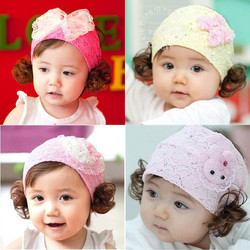 婴儿帽子夏季薄款发带空顶帽女童假发帽春秋头饰女宝宝卤门帽夏天