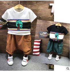 韩版童装2017夏装新款男童短袖T恤 儿童恐龙印花棉质百搭打底衫