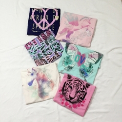 夏季新款蝙蝠式蝴蝶卡通图案女童中大童亲子装宽松时尚短袖上衣