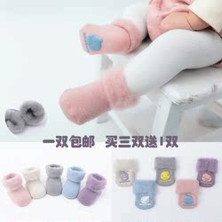 婴儿袜子秋冬季纯棉宝宝毛巾袜6-12个月新生儿加绒加厚地板袜松口