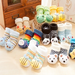 春秋冬季松口防滑纯棉婴儿袜子0-3-6-12个月新生儿立体公仔宝宝袜