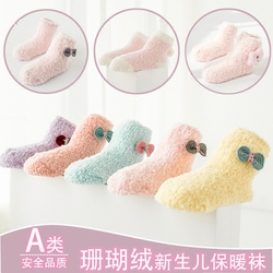 珊瑚绒新生儿宝宝纯棉秋冬1-3岁加厚保暖冬季加绒婴儿袜子地板袜
