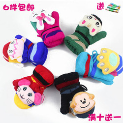6件包邮儿童手套宝宝冬款双层加厚毛线加绒保暖卡通手套婴儿手套