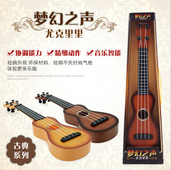 儿童新款10岁4岁尤克里里仿真乐器音乐塑料玩具咖啡色迷你小吉他
