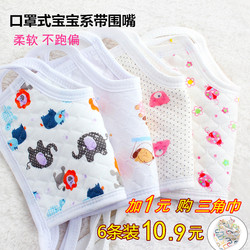 6条装方形口罩式绑带围嘴宝宝新生儿纯棉防水系带围兜婴儿口水巾