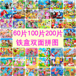 铁盒木质儿童拼图宝宝早教益智力女孩玩具男孩周岁3-4-5-6-7-8岁