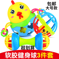 婴儿摇铃手抓球宝宝扣洞玩具学爬软胶牙咬抓握球3-6-12个月健身球
