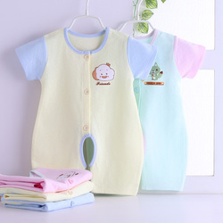 夏春新款儿童卡通短袖连体衣 婴儿短袖空调爬服 宝宝纯棉提花哈衣