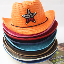 五角星草帽西部牛仔帽渔夫帽爵士帽男女童遮阳帽儿童出游宝宝帽子