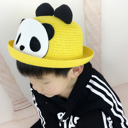 儿童熊猫草帽子宝宝夏帽男童可爱34岁沙滩遮阳帽女童帽子夏季卡通