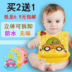 宝宝饭兜防水儿童吃饭喂饭幼儿围嘴大号婴儿围兜卡通图案仿硅胶