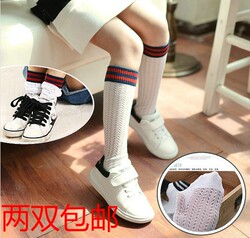 男童女童中筒袜宝宝网眼镂空过膝袜学生夏季薄款纯棉儿童长筒袜子