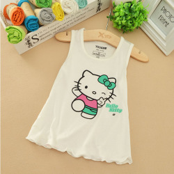 女童莫代尔背心裙韩国童装印花纯棉糖果色宝宝儿童背心女白色背心