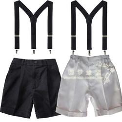 男童演出背带短裤儿童纯黑色西裤中大童西装裤学生表演裤配白衬衣