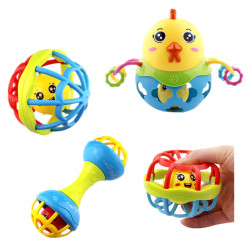 婴儿摇铃手抓球宝宝扣洞玩具学爬软胶牙咬抓握球3-6-12个月健身球