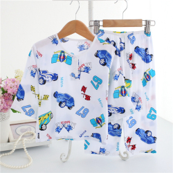 儿童睡衣夏季男女童绵绸长袖套装小孩子宝宝纯棉绸薄款空调家居服