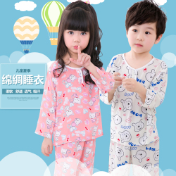 春夏季儿童绵绸睡衣套装男童女童长袖棉绸家居服大童小孩宝宝薄款