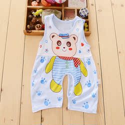 婴儿连体衣宝宝哈衣爬服薄款夏婴幼儿开档无袖睡衣男女童空调服