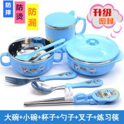婴儿童碗餐具带盖宝宝不锈钢吸盘保温碗叉勺套装辅食