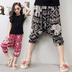 2017新款女童哈伦裤夏装薄款七分裤儿童跨裤飞鼠裤中大童灯笼裤
