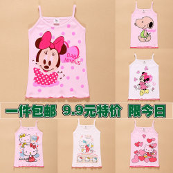包邮夏季女宝宝女童薄棉吊带裙衫儿童纯棉内衣背心卡通款无袖汗衫