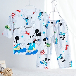 夏季儿童睡衣棉绸套装男童女童绵绸长袖长裤薄空调居家服特价