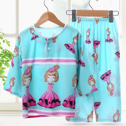夏季长袖儿童睡衣绵绸套装男女童小孩小童宝宝短袖棉绸空调家居服