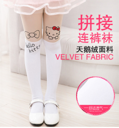 春夏季薄款儿童丝袜连裤袜女童可爱猫咪假中筒透肉拼接打底裤袜子