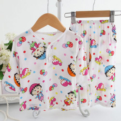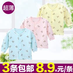 夏季1-2岁儿童薄款家居服婴儿上衣长袖开胸男女婴儿3-6个月长袖衫
