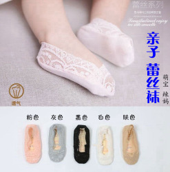 夏季薄款女童浅口蕾丝袜 亲子女宝宝纯色防滑隐形船袜1-3-5-7-9岁