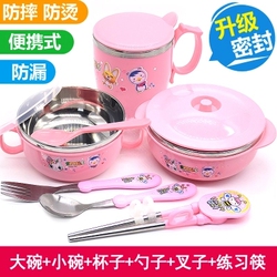 婴儿童餐具不锈钢碗宝宝碗辅食保温碗勺套装带盖小蜜蜂学习筷
