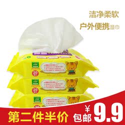 湿巾纸成人婴儿便携湿巾杀菌清洁20片*2包 限时限量9.9元秒杀包邮