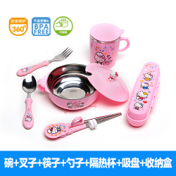 婴幼儿童不锈钢餐具套装 宝宝吸盘碗辅食勺 防摔隔热纠正筷包邮