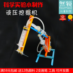 DIY自制气液压活塞挖掘机 4-15岁手工材料 科学实验挖土机模型
