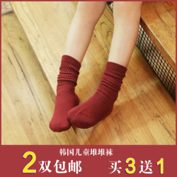 韩国儿童堆堆袜宝宝秋冬松口袜男童女童纯棉中筒袜纯色竖条学生袜