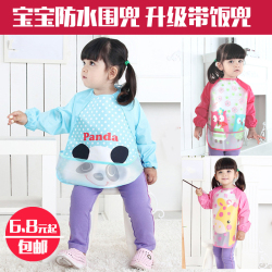 宝宝吃饭围兜 防水婴儿反穿罩衣饭兜 儿童长袖加大号带袖围嘴系带