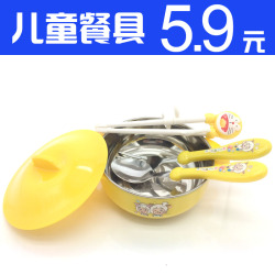 婴儿童碗餐具学习训练筷子宝宝不锈钢吸盘注水保温碗叉勺套装辅食