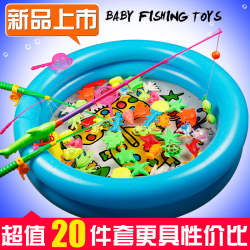 幼儿童钓鱼玩具磁性钓鱼玩具池套装宝宝钓鱼戏水玩具小猫磁性钓