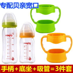3件套 贝亲奶瓶手柄标口宽口玻璃塑料奶瓶配件手把手防摔底坐吸管
