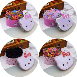 韩国铁盒装盘头黑色发圈马尾绳彩色儿童扎头发一次性橡皮筋发饰品