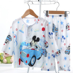 春夏季儿童棉绸睡衣男童女童空调服薄款夏天长袖绵绸宝宝套装短袖