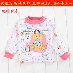 秋冬宝宝秋衣单件中高领上衣纯棉婴儿内衣圆领肩扣长袖套头保暖衣