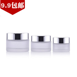 高档化妆品玻璃分装瓶磨砂亮银UV膏霜瓶面霜瓶霜膏包装瓶玻璃空瓶
